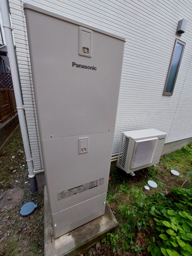 綾町 サンデン自然冷媒CO2ヒートポンプ給湯機ヒートポンプユニットEB-KP45HPA2→パナソニック家庭用ヒートポンプ給湯機ヒートポンプユニットHE-PLS45L 貯湯ユニットHE-LS37LQ エコキュート交換工事 施工前 施工後