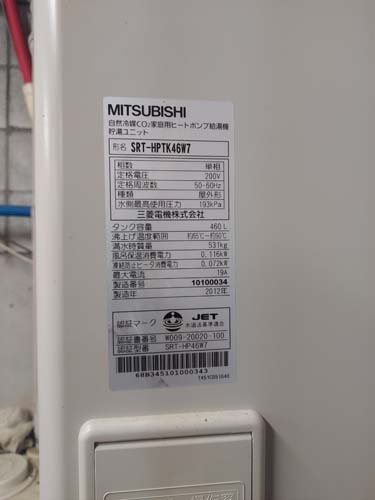 高原町 三菱電機自然冷媒CO2家庭用ヒートポンプ給湯機貯湯ユニットSRT-STK376UD、ヒートポンプユニット エコキュート交換工事